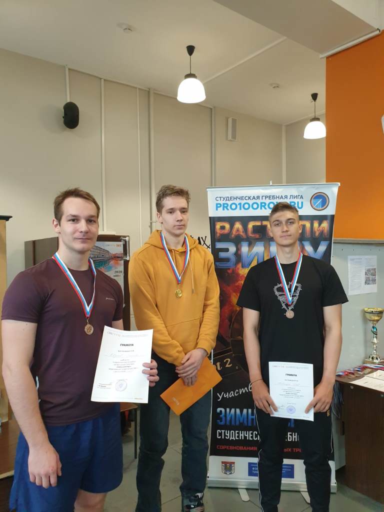 В соревнованиях среди юношей на дистанции 500 м чемпионом стал победитель Кубка ректора 2021 г. Александр Никитин с результатом 1 мин. 22,6 сек., которому до рекорда университета не хватило 0,2 сек. На 2 месте – рекордсмен университета на дистанции 1 км Никита Обухов (ВУЦ) с результатом – 1 мин. 23,8 сек. Третье место за молодежью – Глеб Шевченко (СПбКТ) – 1 мин. 24,6 сек. По сумме выступлений всех юношей в команде победителем в этой номинации стала команда ВУЦ, на 2 месте – команда факультета РТС, на 3 месте – команда СПбКТ.
