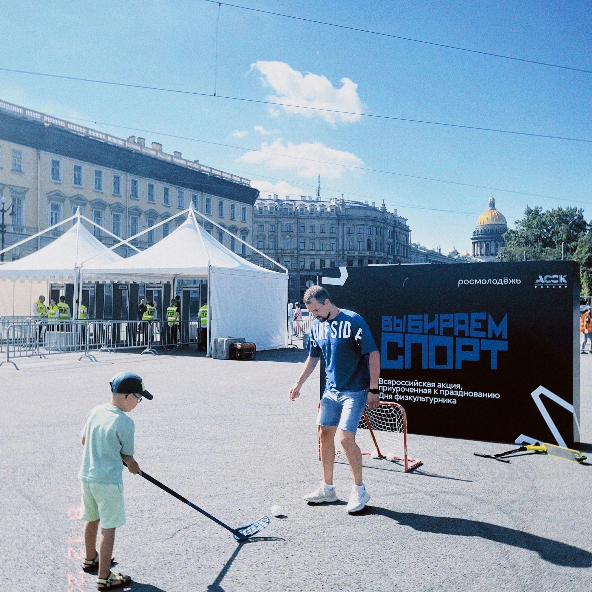 На главной площади Санкт-Петербурга гости могли поучаствовать в флорболе и настольном баскетболе, сыграть в шашки, попробовать свои силы в балансборде и художественной гимнастике и позаниматься Всероссийской зарядкой АССК России.