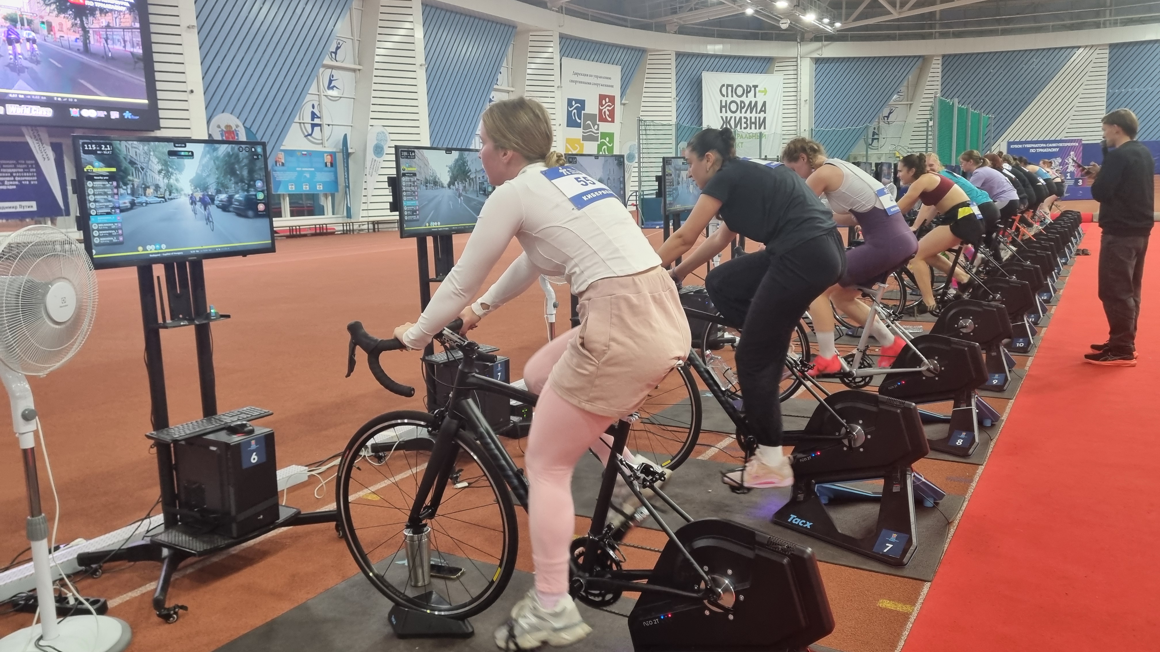 Соревнования включали программу Rouvy в паре со станком Tacx Neo 2T, которые полностью имитируют участие в велогонке: рельеф, набор высоты, драфтинг, живописные виды лучших трасс мира. Юноши «проехали» дистанцию в 20 км, девушки – 13 км.