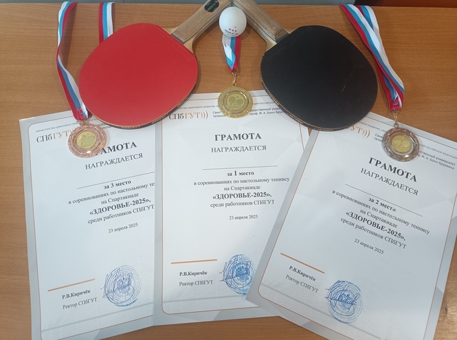 Спартакиада «Здоровье-2025», посвящённая 95-годовщине со дня образования СПбГУТ (ЛЭИС), началась в Международный день настольного тенниса с соревнований по этому виду спорта. Оспаривать звание «первой ракетки СПбГУТ» вышли 12 работников из 7 команд.