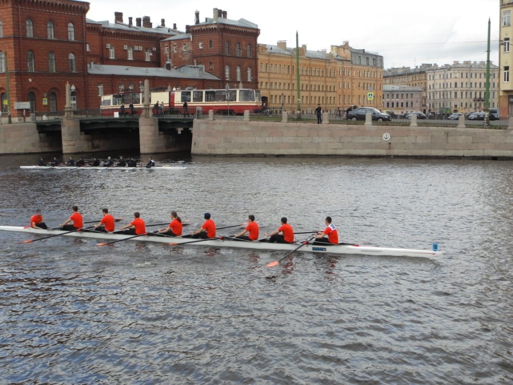 Или "Они были первыми!". Именно так можно начать сообщение об успехах первой в истории университета сборной восьмерки академической и их первый "дальний поход" на академической восьмерке от Старо-Калинкиного моста ("Адмиралтейские верфи") до Летнего сада по реке Фонтанке под 12-тью мостами - 5300 м. Всего в этих соревнованиях приняли участие 19 студенческих гребных команд из Москвы, Саратова, Томска, Калининграда, Екатеринбурга, Нижнего Новгорода, Владивостока и даже из Италии (университет в г. Павия). В состав 1-й сборной СПбГУТ по академической гребле вошли:
