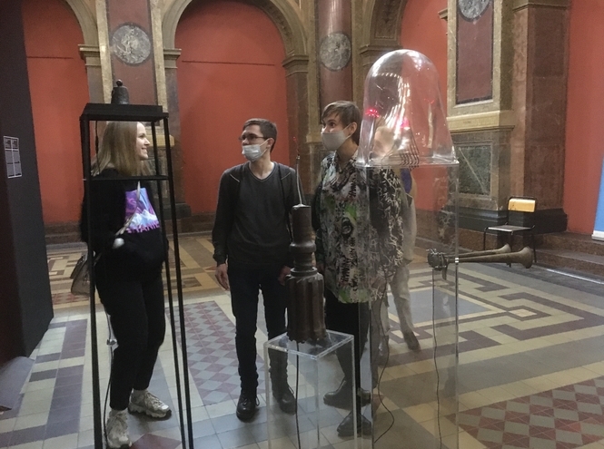 27.11.2021г. преподаватели кафедры ИКД провели выездное занятие со студентами гр. ИСТ-931, 932, 933 – доц. Мусаева Т.В., гр. ИСТ-131м, 132м – ст.преп. Бояшова Е.П. по своим дисциплинам. Занятия проходили на площадке 13-го Международного фестиваля медиаискусства «Киберфест» в здании СПбГХПА им. А.Л. Штиглица. «Киберфест» – один из крупнейших международных фестивалей в области медиаискусства в Восточной Европе, основанный группой независимых художников и кураторов в Петербурге в 2007 году, он объединяет представителей мира искусства, программистов, инженеров и медиа-активистов со всего мира, расширяет территорию и возможности современного искусства, переплетая его с различными направлениями науки и техники. Студенты, обучающиеся по профилям «Дизайн графических и пользовательских интерфейсов информационных систем» и «Информационные технологии в дизайне» ознакомились с работами на стыке междисциплинарной арт-практики и экспериментов с медиа; с видео- и звуковыми инсталляциями; разнообразными технологиями, включая манипулирование данными; исследованиями психологического, виртуального, физического пространства в области цифрового искусства как нового способа художественной коммуникации.
