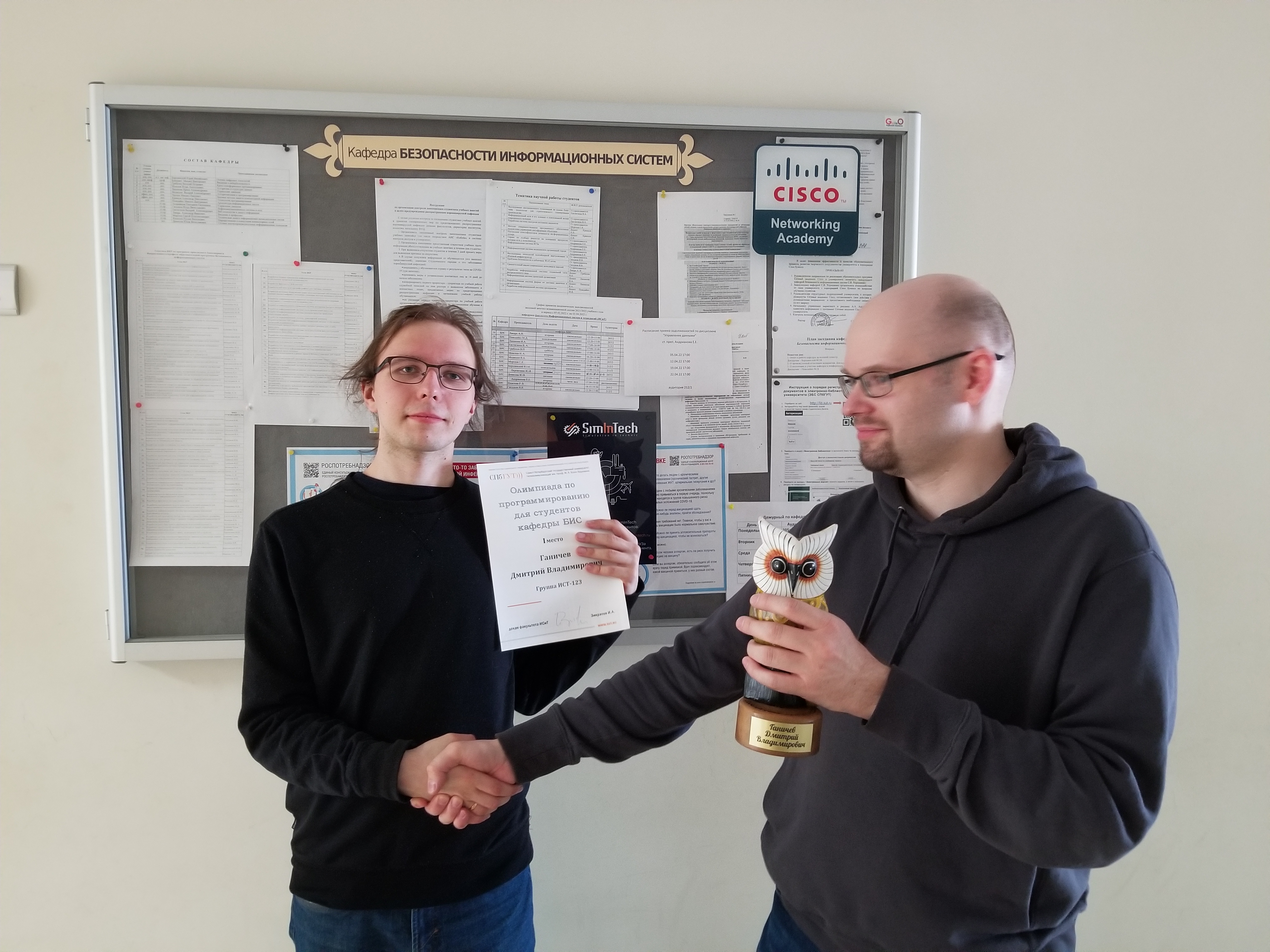9 Апреля 2022 года на кафедре БИС прошла дистанционная олимпиада по программированию по мотивам художественного телефильма «Семнадцать мгновений весны», в результате проведения были определены призеры: