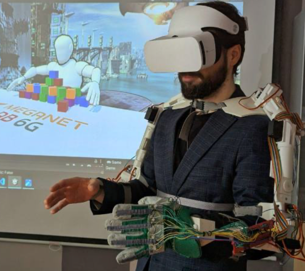 В научно-исследовательской лаборатории MEGANETLAB 6G при СПбГУТ разработан костюм телеприсутствия с кинестетической обратной связью и прототип Метавселенной для исследования проблем взаимодействия цифрового и физического мира.
