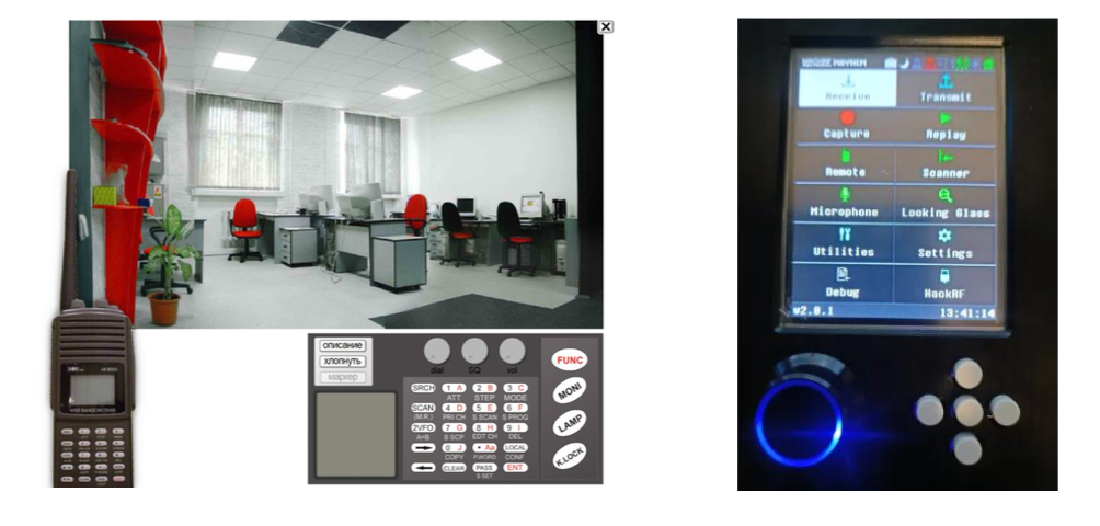 В лабораторном стенде имеется тренировочный программный макет по радиоперехвату и аппаратный комплекс состоящий из устройства HасkRF оnе + Роrtарасk. Разработан для тестирования и разработки современных радиотехнологий и технологий следующего поколения.