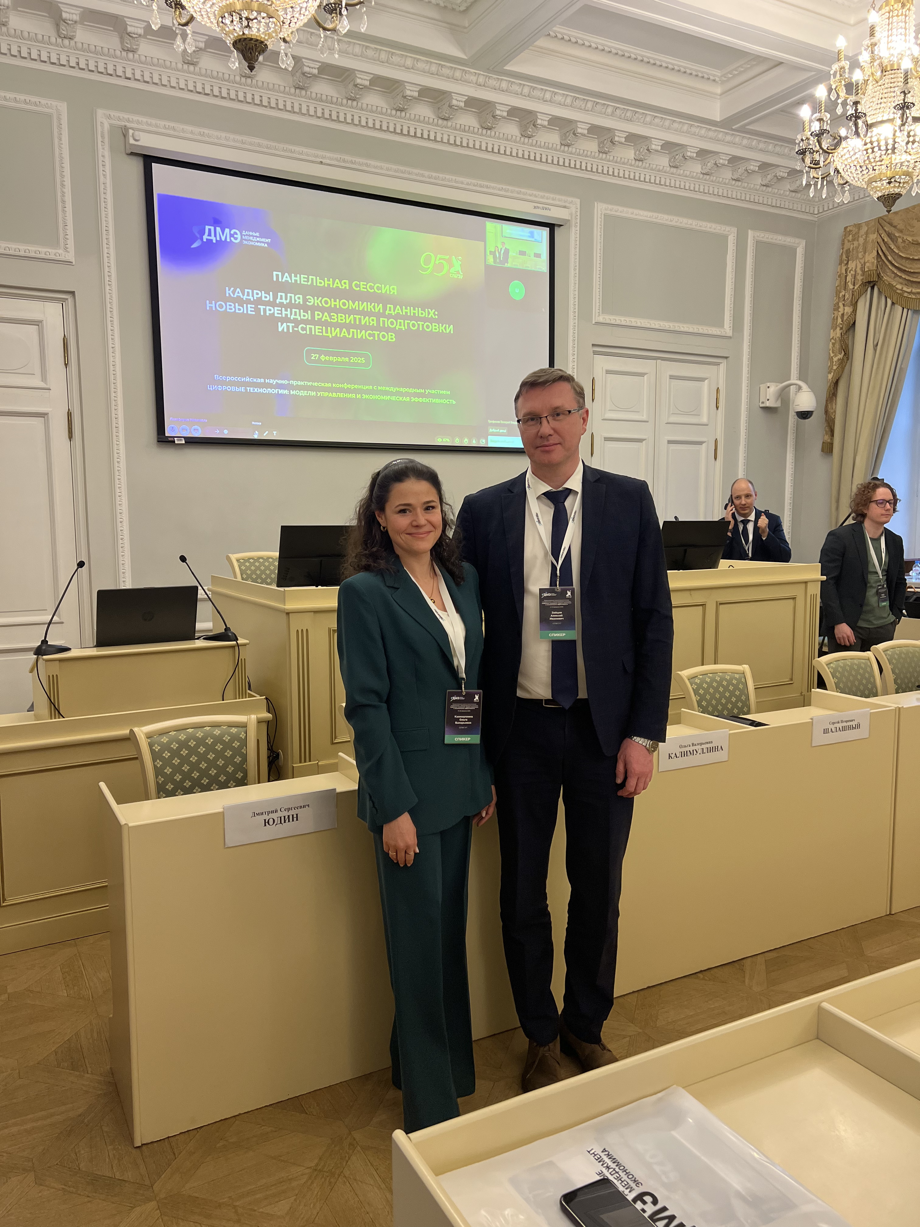 Руководитель проекта «Цифровая кафедра», и. о. заведующего кафедрой экономики данных Ольга Калимуллина выступила на панельной сессии «Кадры для экономики данных: новые тренды развития подготовки ИТ-специалистов». Она рассказала, как СПбГУТ в тесной связке с партнёрами из бизнеса готовит специалистов с востребованными и актуальными ИТ-компетенциями в рамках проекта «Цифровая кафедра».