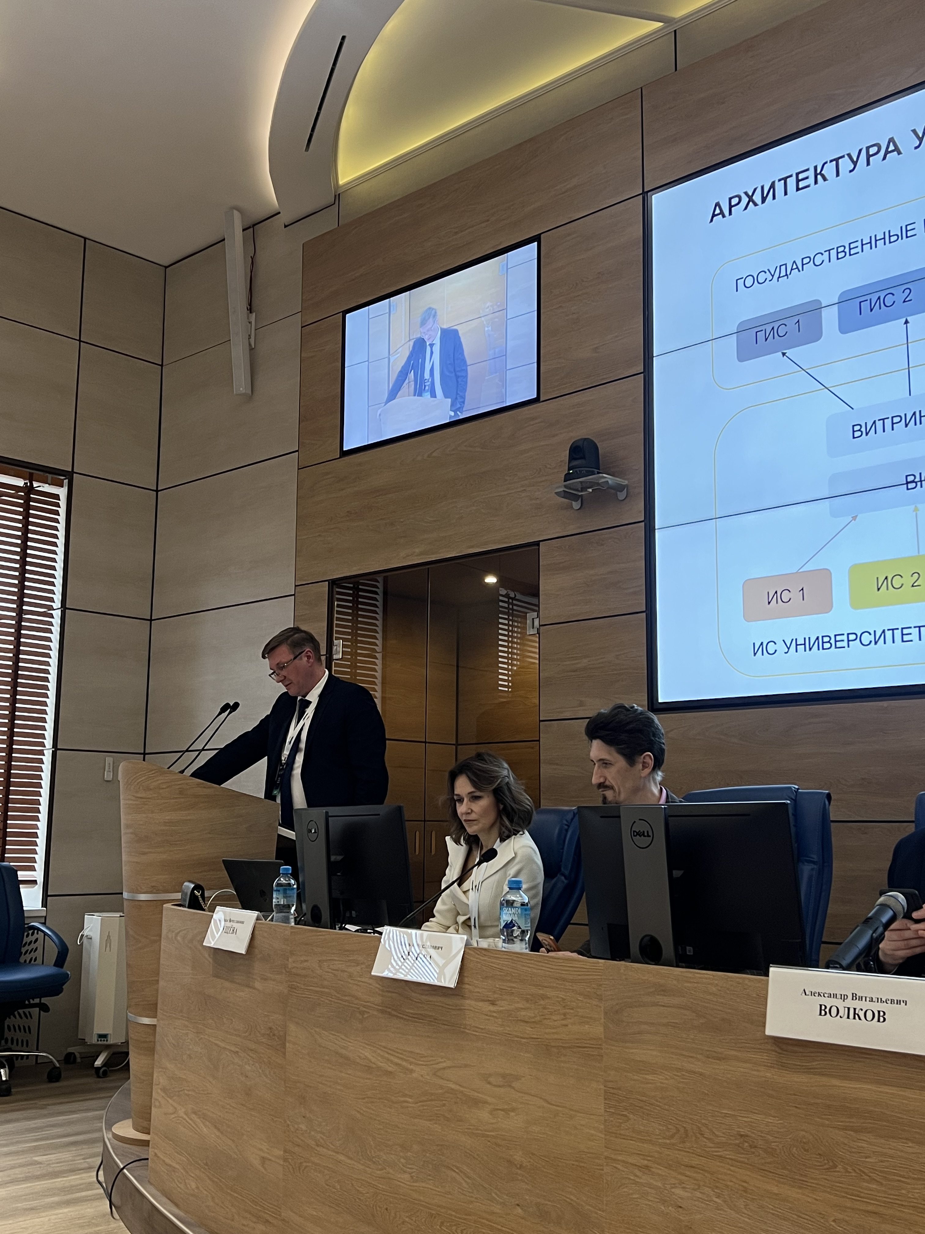 Проректор по цифровой трансформации и административной работе СПбГУТ Алексей Зайцев выступил на панельной сессии «Влияние “экономики данных” на высшее образование и науку: будущее университетских информационных систем» с докладом «Государственные платформы в сфере высшего образования: драйверы цифровой трансформации университетов и формирование новой архитектуры данных». Он рассказал о проектах СПбГУТ в части работы с архитектурой данных вуза и наработках в области информационной безопасности.