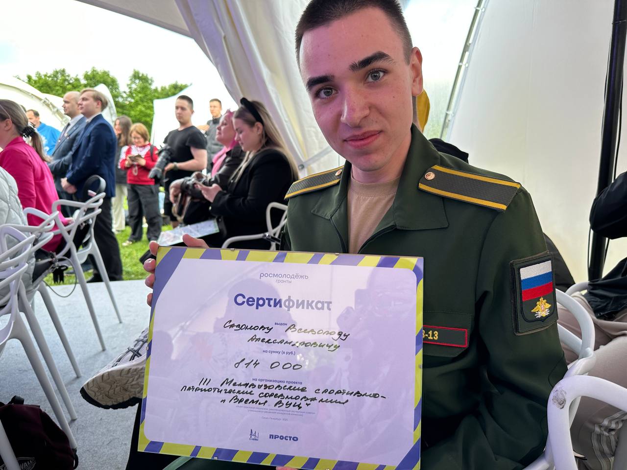 Среди победителей — студент СПбГУТ Всеволод Сазонов с проектом «III Межвузовские спортивно-патриотические соревнования "Время ВУЦ"». Всеволод выиграл грант на сумму 814 000 рублей в номинации #защищай.