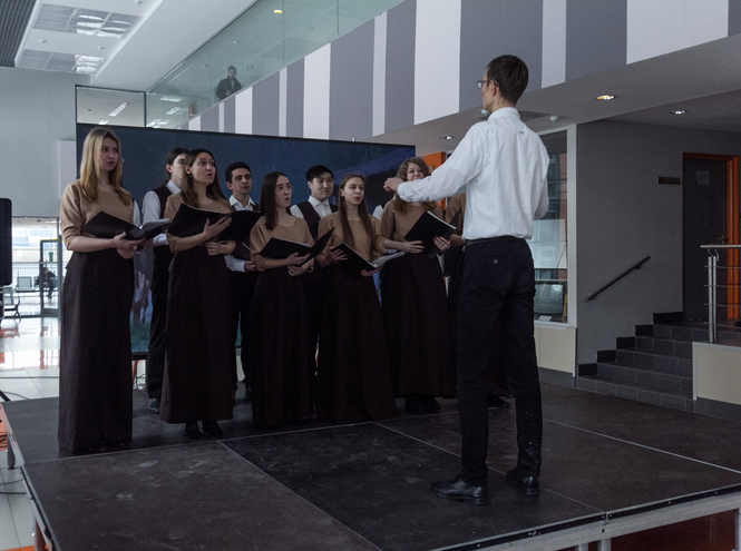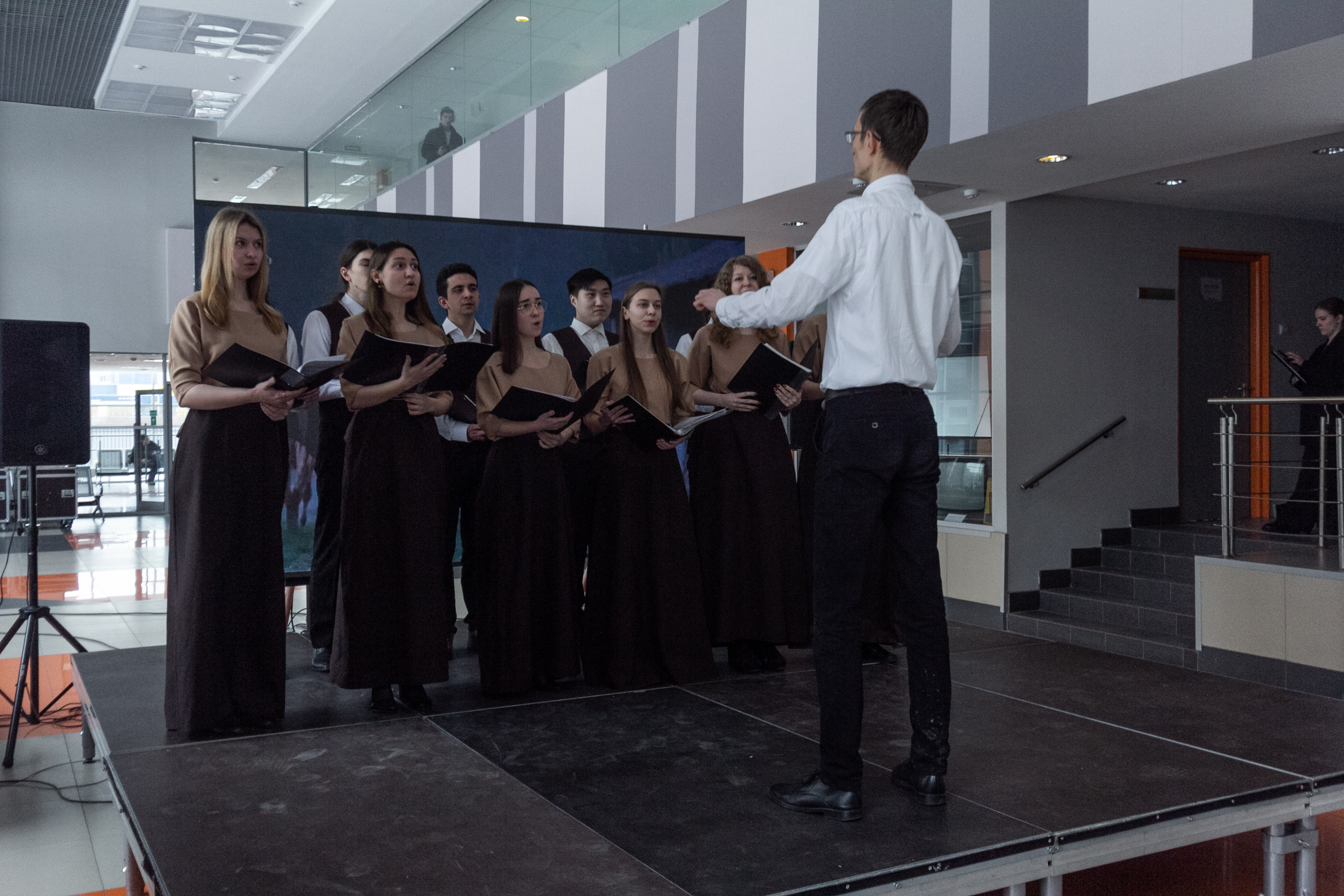 В честь Дня защитника Отечества в холле главного корпуса 24 февраля прозвучали песни и слова благодарности военнослужащим. В концертной программе приняли участие студенты «Бонча» и колледжа, хор СПбГУТ "Cantares", а также вокалистка из Исаакиевского собора.