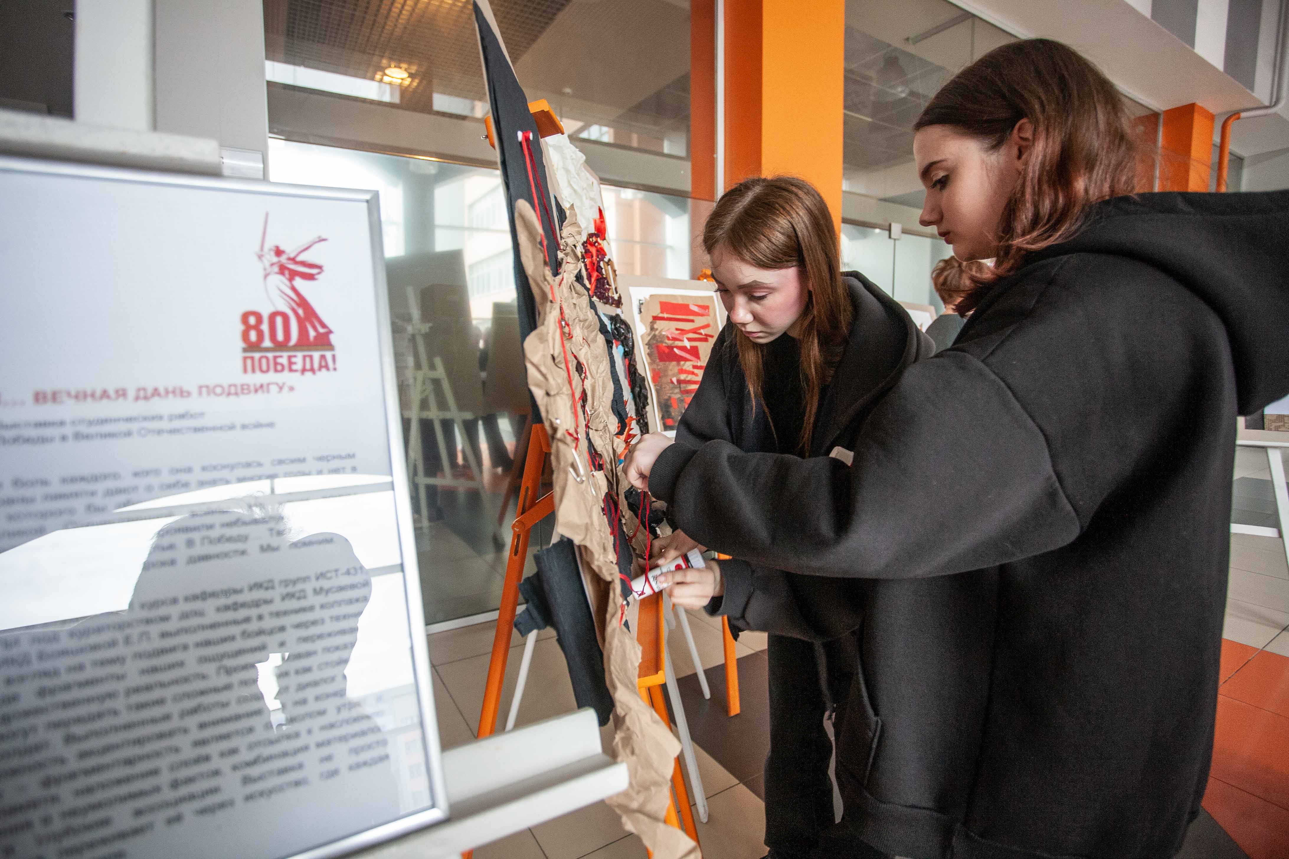 Куратор выставки студенческих работ «Сквозь время... Вечная дань подвигу», старший преподаватель кафедры ИКД Елена Бояшова отметила, что работы ребят показывают, как абстрактные формы могут передать сложные понятия: стойкость, мужество, боевой дух солдат.