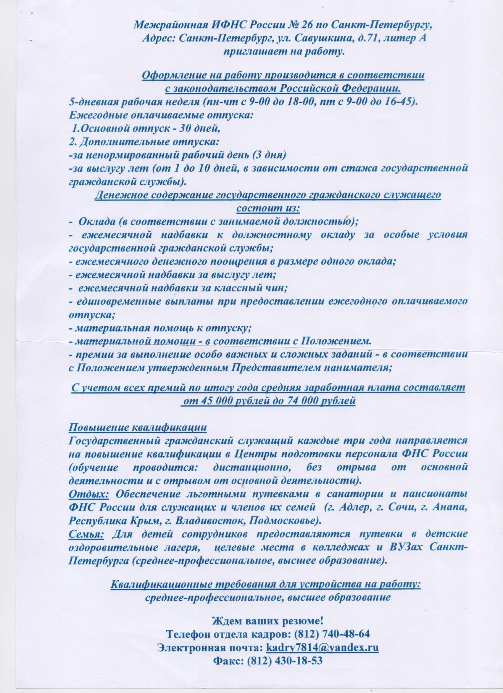 Если Вы – студент и хотите откликнуться на вакансию, то заполните форму резюме и отправьте по адресу электронной почты rezume@sut.ru