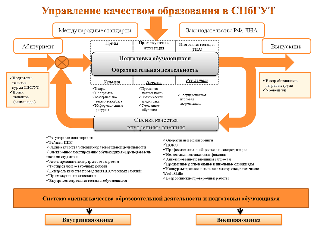 Система оценки качества СПбГУТ охватывает весь образовательный процесс и включает в себя: