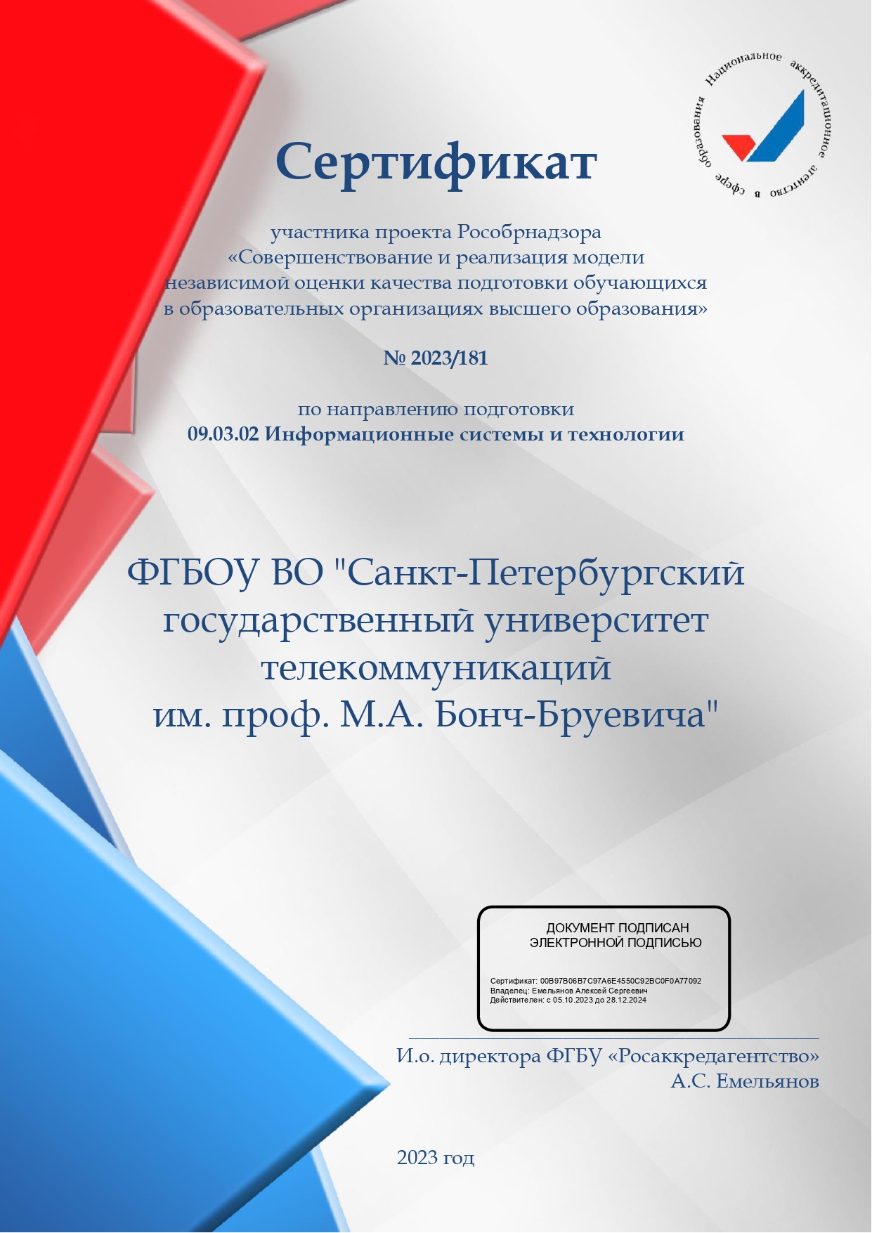 | 64. | Свидетельство о государственной аккредитации (с приложениями) (при наличии) | https://www.sut.ru/sveden/document |