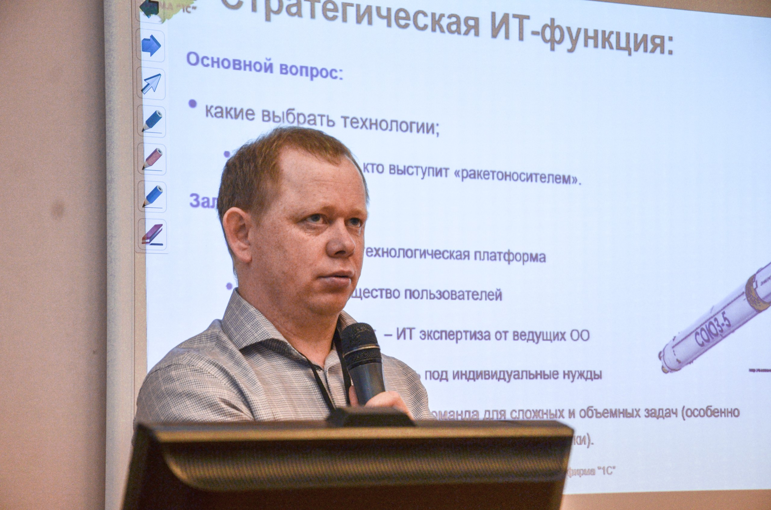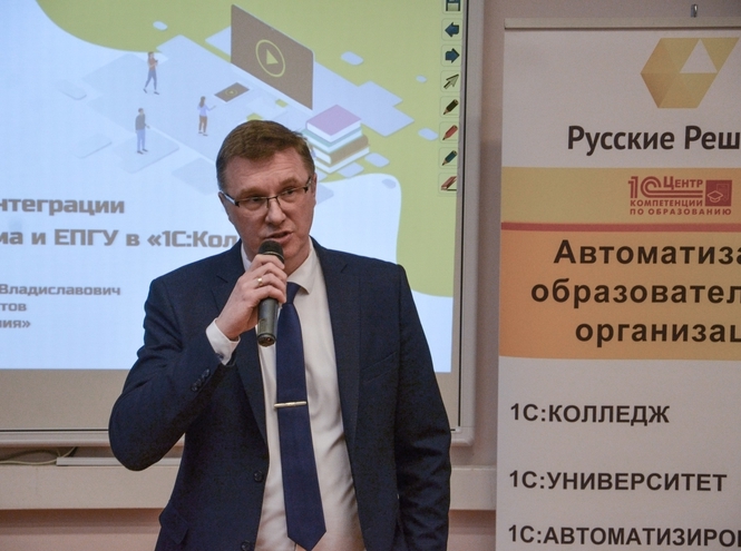 В заседании круглого стола также приняли участие ведущие разработчики программного обеспечения для образовательных организаций. Особый интерес вызвали решения фирмы «1С», которые представлял руководитель проектов Александр Родюков.