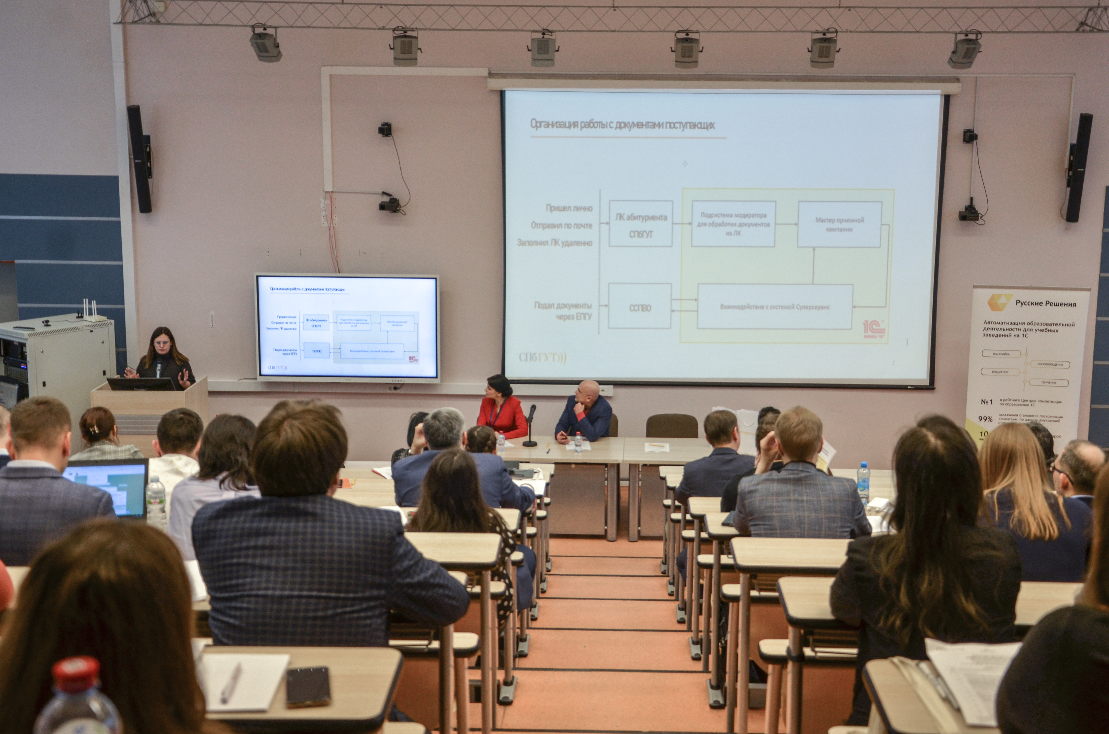 Так же была затронута интересная тема перехода с «1С: Документооборот» 2.1 на «1С: Документооборот» 3.0 с использованием отечественного ПО на примере СПбГУТ. Докладчиком выступал руководитель проекта «1С: Документооборот» СПбГУТ Даниил Вячеславович Дудко.